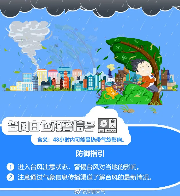 深圳市氣象臺于2020年07月31日17時05分在全市發(fā)布臺風白色預(yù)警,南海熱帶低壓已于31日14時生成,全市進入臺風注意狀態(tài),目前全市大風藍色預(yù)警同時生效中,請遵照海事、漁政部門的防風指令或通知,做好避風準備。