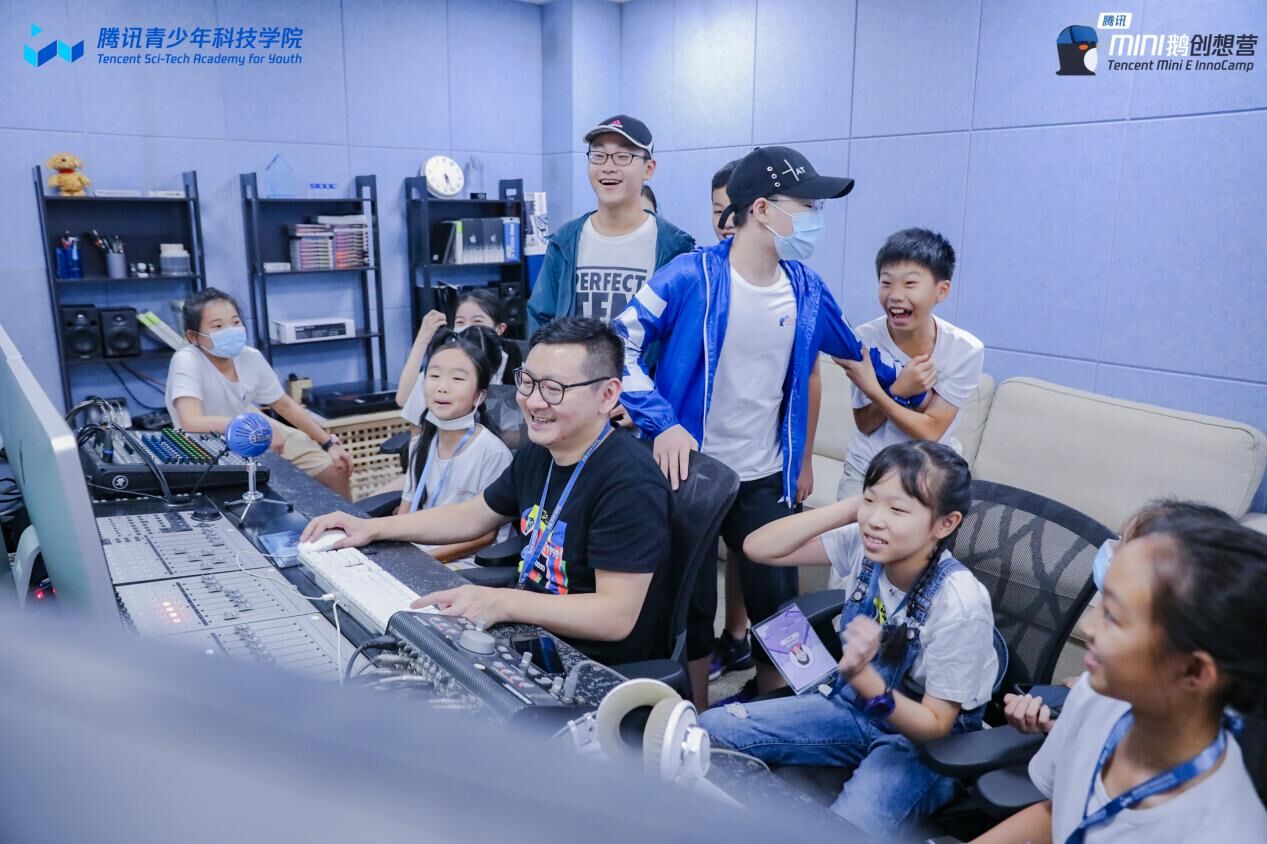 騰訊CROS音頻團(tuán)隊導(dǎo)師在專業(yè)錄音棚指導(dǎo)學(xué)員們進(jìn)行音頻錄制與剪輯