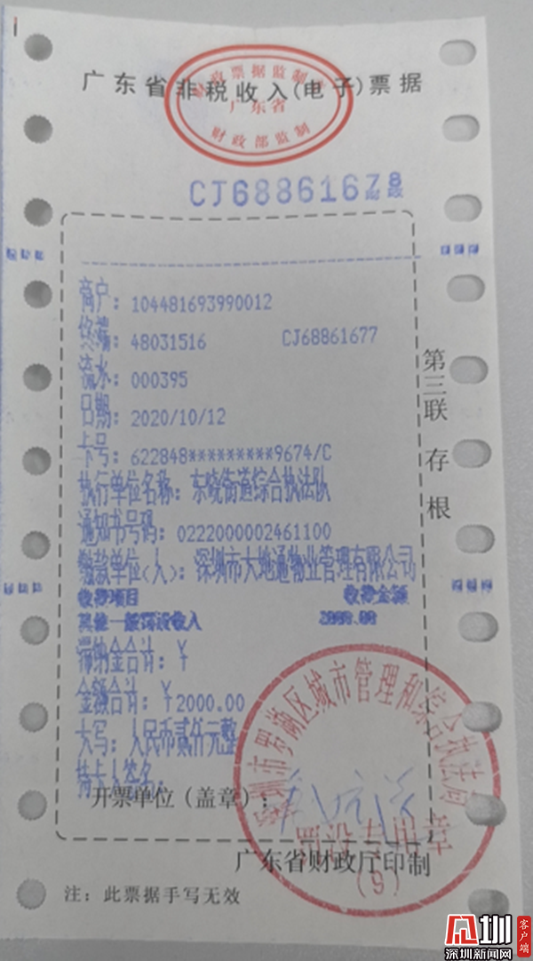 深圳新聞網(wǎng)訊 (見圳客戶端、深圳新聞網(wǎng) 記者 彭桂紅 通訊員 吳清慶)9月1日,《深圳市生活垃圾分類管理條例》正式實施,經(jīng)過一個月的執(zhí)法警示期,10月起,深圳垃圾分類進(jìn)入集中執(zhí)法階段,對不開展垃圾分類等行為正式開罰。記者10月14日獲悉,深圳市羅湖區(qū)東曉街道執(zhí)法隊10月12日,開出轄區(qū)首張物業(yè)罰單,對深圳市大地通物業(yè)管理有限公司因垃圾分類投放點和收集容器未保持整潔立案查處,作出罰款人民幣2000元的行政處罰。行政處罰相對人已依法繳納罰款。