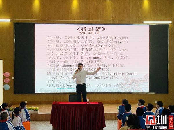 深圳新聞網(wǎng)訊(深圳新聞網(wǎng)記者 彭桂紅 通訊員 梁文雅)為進(jìn)一步弘揚(yáng)中華優(yōu)秀傳統(tǒng)文化,近日,深圳市錦田小學(xué)特邀青年文化學(xué)者、深圳市百姓學(xué)習(xí)之星、深圳市公益閱讀推廣人、深圳市首屆家園文化文學(xué)會(huì)會(huì)長晉玉東為廣大師生開展了一場別開生面的“中國古典詩詞朗誦藝術(shù)鑒賞——兼談如何朗誦好一首詩”公益文化講座。羅湖區(qū)錦田小學(xué)德弘校區(qū)副校長劉向陽、羅湖區(qū)錦田小學(xué)德弘校區(qū)主任張俊暉、羅湖區(qū)未來學(xué)校主任謝淑紅、德弘二年級(jí)家委代表以及語文科組老師,一同參加?;顒?dòng)由班主任梁文雅和學(xué)生劉沛東、張家琪共同主持,近200名學(xué)生參加了講座活動(dòng)。整場講座師生熱情高漲,主講嘉賓深入淺出、娓娓道來,參與學(xué)生思維活躍、表現(xiàn)積極,帶動(dòng)校園形成了學(xué)習(xí)詩詞文化的良好氛圍。