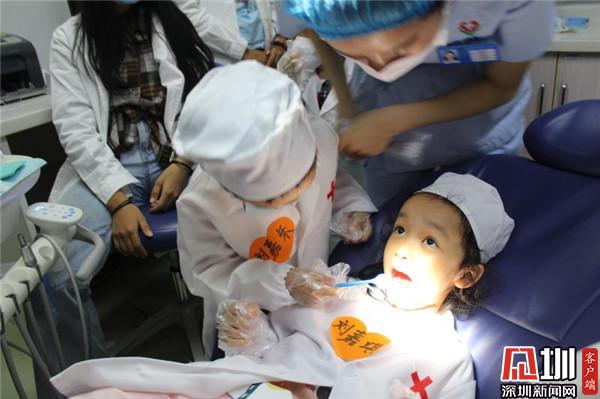 深圳新聞網(wǎng)訊(見圳客戶端、深圳新聞網(wǎng)記者 李慧 通訊員 楊紀(jì)歐)10月25日,羅湖區(qū)桂園街道老圍社區(qū)黨群服務(wù)中心組織社區(qū)青少年到醫(yī)院開展了一場社會(huì)實(shí)踐體驗(yàn)活動(dòng),13位小朋友身穿白大褂,頭戴醫(yī)生帽,手拿口腔鏡,為“病人”檢查牙齒,當(dāng)了一回牙醫(yī),體驗(yàn)了當(dāng)醫(yī)生的快樂,同時(shí)也感知到愛護(hù)牙齒的重要。3歲的劉嘉樂小朋友給姐姐看完牙齒后對(duì)媽媽說:“媽媽,姐姐有蛀牙。我以后也要好好刷牙?!?/span>