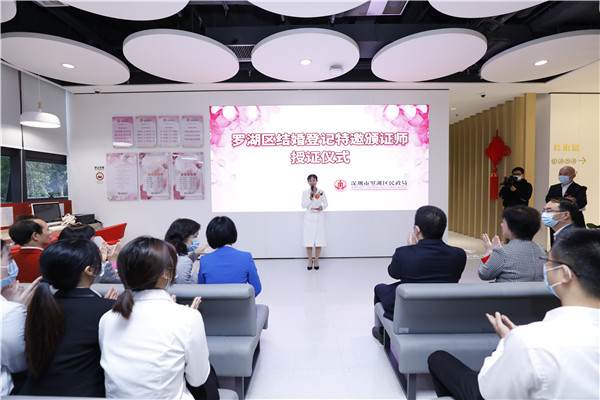 據(jù)悉,結(jié)婚登記頒證儀式是羅湖區(qū)民政局為了推崇簡(jiǎn)約適度、文明向上的婚俗禮儀,倡導(dǎo)健康家庭倫理、婚姻文化、文明婚俗,培育好家風(fēng)、傳承好家風(fēng),為結(jié)婚新人提供的免費(fèi)服務(wù)。