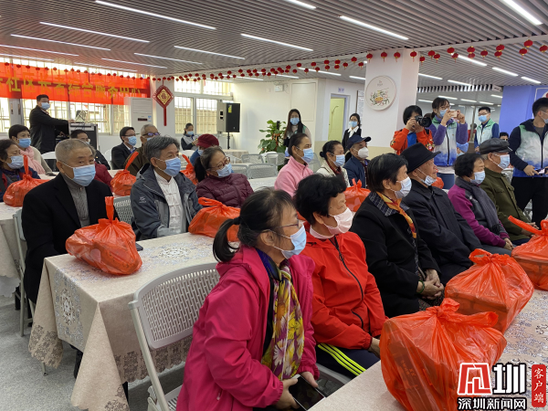 時值冬至佳節(jié),陽光和煦,羅湖區(qū)副區(qū)長左金平向在場的各位老年人獻上節(jié)日的祝福,并向他們分發(fā)冬至禮包,禮包內有雞蛋、食用油等日常用品,收到禮品的老人們臉上洋溢著幸福的笑容。