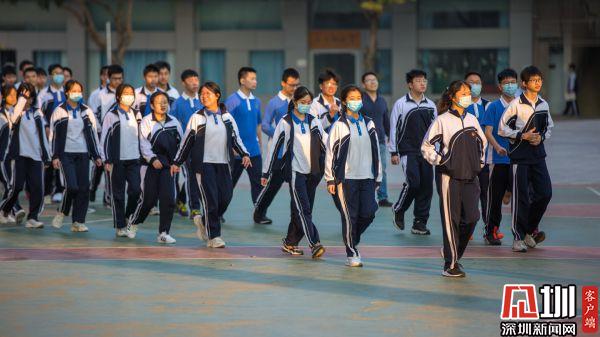 翠園中學(xué)的同學(xué)們迎著晨光參加開(kāi)學(xué)典禮。
