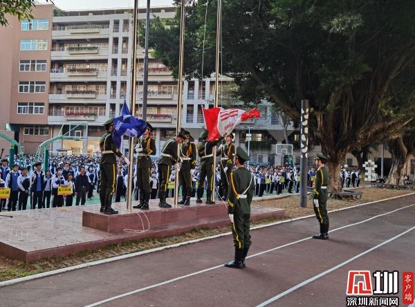 羅湖外國(guó)語(yǔ)學(xué)校初中部開(kāi)學(xué)典禮上,校國(guó)旗班準(zhǔn)備升旗。