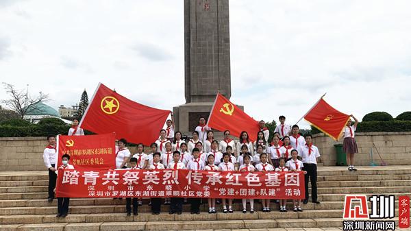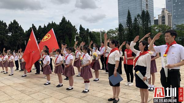 最后,全體參與人員在羅湖區(qū)東湖街道翠鵬社區(qū)黨委副書記甘麗麗及東曉小學少先隊大隊長的帶領(lǐng)下重溫入黨、入隊誓詞,堅定的誓言響徹每一個角落。