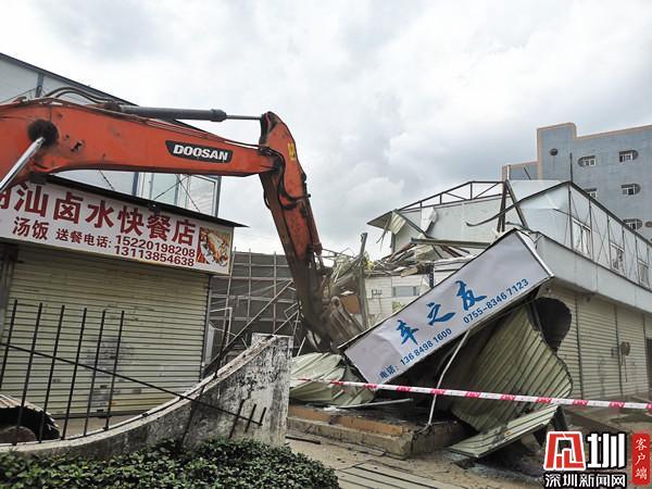 清水河街道黨工委書(shū)記魏剛、黨工委副書(shū)記、辦事處主任李智現(xiàn)場(chǎng)指揮拆除行動(dòng),羅湖區(qū)人民政府副區(qū)長(zhǎng)馮健、羅湖區(qū)規(guī)劃土地監(jiān)察局副局長(zhǎng)王亞麗到現(xiàn)場(chǎng)進(jìn)行安全檢查與指導(dǎo)工作。