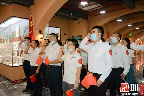 參觀活動(dòng)結(jié)束后,全體成員進(jìn)行了重溫入黨誓詞環(huán)節(jié)。在鮮紅的黨旗下,黨員們舉起右拳,在羅湖區(qū)委宣傳部二級(jí)調(diào)研員李文威的帶領(lǐng)下莊嚴(yán)宣誓,大家仿佛又看到了自己第一次站在莊嚴(yán)的黨旗下宣誓的樣子:“我志愿加入中國共產(chǎn)黨,擁護(hù)黨的綱領(lǐng),遵守黨的章程……”一聲聲鏗鏘有力的入黨誓詞在博物館中回響。
