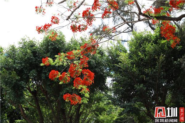 見(jiàn)圳客戶端·深圳新聞網(wǎng)5月18日訊(記者 李慧 見(jiàn)習(xí)記者 郝鈺詩(shī) )又是一年五月天,春已盡,夏未央。伴隨深圳夏季而來(lái)的還有熱烈的鳳凰花?!叭~如飛凰之羽,花若丹鳳之冠?!痹谏钲诘脑S多地方,都種植了鳳凰木,五六月夏初之際,鳳凰花便開(kāi)始掛滿枝頭,抬頭仰望便是紅彤彤的一片,就像太陽(yáng)遺落在人間的衣裳,點(diǎn)綴著灣區(qū)之光。5月18日,深圳新聞網(wǎng)記者來(lái)到深圳東湖公園和洪湖公園,用鏡頭定格鳳凰花之美。