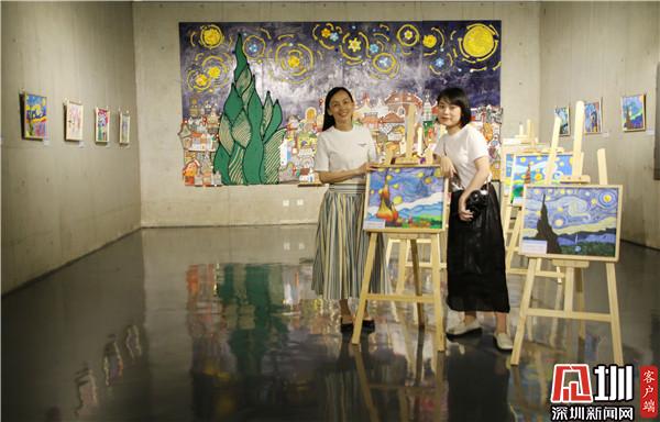 騎著小白兔在天上看四大名樓、把四大名樓帶到宇宙里、在四大名樓上面遇見天空之城……現(xiàn)場,幾幅畫作吸引觀賞者駐留觀看?!皻v代文人墨客用千古名篇頌揚(yáng)四大名樓,而這個《中國四大名樓》系列作品,孩子們將與深圳共成長的切身感受,與歷史畫卷中的四大名樓發(fā)生靈感碰撞,以簡單的水墨畫表現(xiàn)形式,呈現(xiàn)出不可思議的藝術(shù)效果?!弊髌分笇?dǎo)老師于雪在采訪時介紹說道,這一系列的作品,是三四年級的孩子創(chuàng)作,身高沒有很高,但是作品的畫幅很大,而且用的材質(zhì)是宣紙,比較容易破,因此孩子們在繪畫過程中也學(xué)會了調(diào)整身體的位置和紙張比例,以及更加小心翼翼地保護(hù)自己的畫作,這也是他們創(chuàng)作中有趣的過程。