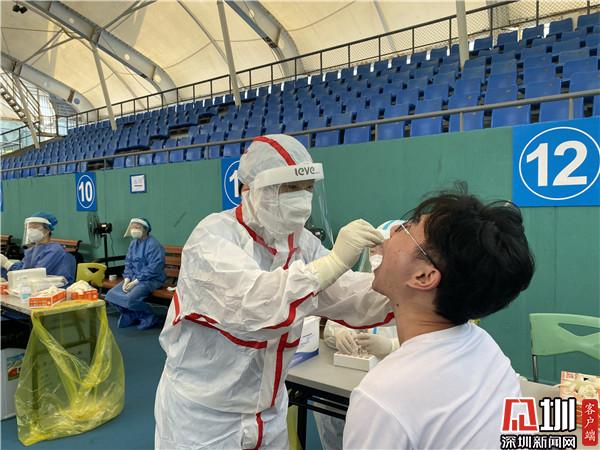 “根據(jù)當(dāng)前疫情防控工作要求,結(jié)合羅湖區(qū)實(shí)際情況,我們?cè)?8日啟用去體育館這個(gè)臨時(shí)采樣點(diǎn),現(xiàn)場(chǎng)我們可以看到整個(gè)采樣工作是很有秩序的,因?yàn)槲覀冊(cè)诿總€(gè)時(shí)間段安排不同的人群進(jìn)行采樣,所以不會(huì)出現(xiàn)排隊(duì)擁擠等情況?!绷_湖區(qū)衛(wèi)健局公共衛(wèi)生和職業(yè)衛(wèi)生科科長(zhǎng)江正談道,羅湖成立了一支擁有1200人的平戰(zhàn)結(jié)合應(yīng)急采樣隊(duì),隨時(shí)為疫情防控工作做好備戰(zhàn)準(zhǔn)備,一旦有需要,隨時(shí)就可以投入戰(zhàn)斗。“現(xiàn)在這個(gè)臨時(shí)檢測(cè)點(diǎn)每天的采樣量大概在5000個(gè)左右,我們很有信心,能夠打贏這場(chǎng)戰(zhàn)‘疫’。”江正說。