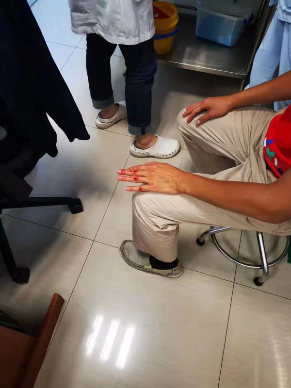 心中著急的梁國輝剛上路不久,突然間精神恍惚,車頭沒把穩(wěn),等反應(yīng)過來已經(jīng)趴在地上了。網(wǎng)格員王勇剛好路過,扶起梁國輝送到社康止血與包扎。社康醫(yī)生一邊處理一邊對(duì)他說:“傷口比較深,現(xiàn)在幫你止血,等一下必須去留醫(yī)部急診處理一下,牙齒也缺了兩塊,怎么傷得那么重呀?”“昨天加班熬夜了,沒睡好,給你添麻煩了。”梁國輝不好意思地說道,社康醫(yī)生笑著安撫他:“大家都是兄弟姐妹,我們昨天不是一起在繽紛時(shí)代加班驗(yàn)核酸…”原來社康醫(yī)生正是此前與自己一起在疫情防控工作的小伙伴之一,便安下心來接受治療。