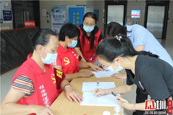 在社區(qū)“宣傳疫苗接種先鋒崗”前,忙碌著黨員的身影。社區(qū)居民林志文,是一名有著21年黨齡的老黨員。今年63歲的她身穿紅馬甲,臂戴“疫情監(jiān)督員”的紅袖章,精神抖擻地站在老圍花園E座出入口,笑容可掬地用本地話問:“靚仔,打疫苗了嗎?這里可以預(yù)約喲?!薄办n仔”聽到如此親切的鄉(xiāng)音,停下匆匆的腳步,“沒打呢,現(xiàn)在預(yù)約吧。”與林姐是最佳拍檔的老黨員尹小妹,她們都是本地人,平時(shí)除了唱歌跳舞,她們還積極參加社區(qū)活動,疫情當(dāng)前,她們冒著被感染的風(fēng)險(xiǎn),勇敢站出來,用自己的實(shí)際行動,詮釋著黨員的模范先鋒帶頭作用。