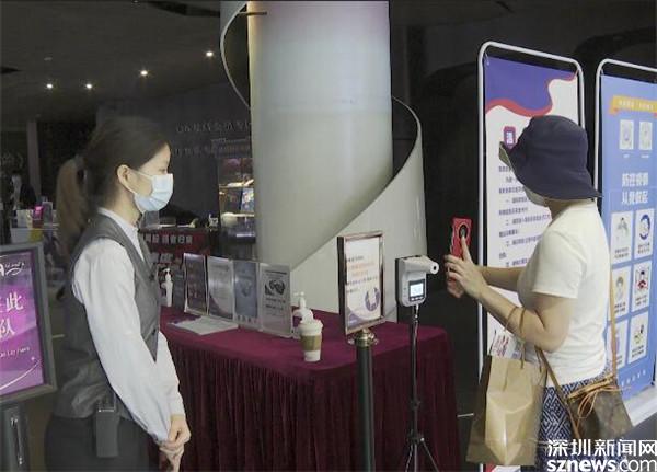在直播鏡頭的另一邊,記者在羅湖UA影院看到,門口顯眼位置擺放了疫情防控宣傳板并設(shè)置了測溫登記臺,還配置了免洗洗手液等防疫物資,前來觀影的市民需出示綠碼,并進(jìn)行測溫,方可進(jìn)入影院。此外,影院工作人員的核酸檢測、疫苗接種數(shù)據(jù)都會記入臺賬。