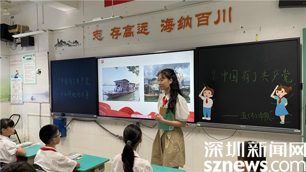 6月16日上午,記者走進深圳市螺嶺外國語實驗學校,教室里的老師正生動地講述中國共產(chǎn)黨的光輝歷程,通過一張張珍貴的歷史圖片、一段段刻骨銘心的歷史故事,引領(lǐng)同學們共同追尋紅色記憶、感懷革命精神。