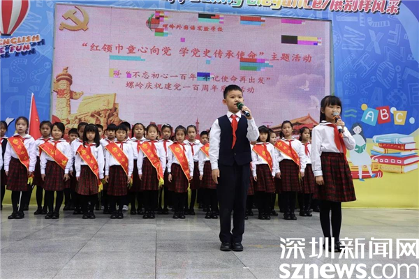 據(jù)了解,深圳市螺嶺外國語實驗學校從2020年10月就持續(xù)開展形式多樣的黨史學習教育進校園,其中包含“大手拉小手、黨史進課堂”黨員教師宣講黨史隊會課、“紅領(lǐng)巾童心向黨,學黨史傳承使命”全體師生升旗課程、“大手拉小手、共學黨隊史”大隊委宣講黨史隊史隊知識等。