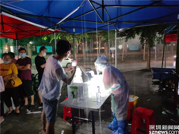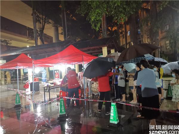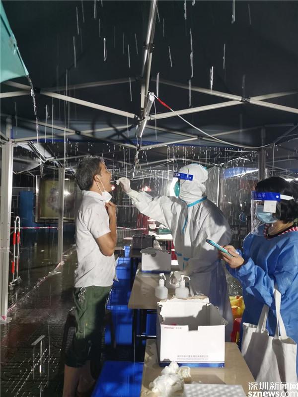 讀特客戶端·深圳新聞網(wǎng)2021年6月21日訊(記者 李慧)6月21日晚及6月22日一早,深圳雷雨交加,深圳市氣象臺2021年06月22日07時10分在多個區(qū)域發(fā)布暴雨紅色預(yù)警,羅湖也包括其中。有那么一群人,嚴陣以待、逆雨迎風(fēng),堅守在抗疫一線。記者到各核酸檢測點看到,醫(yī)護人員和社區(qū)義工們?nèi)匀幻爸L(fēng)雨,堅守在核酸采集的崗位上。