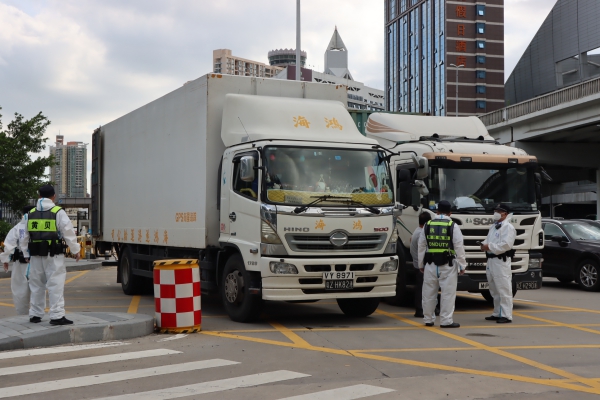 記者在現(xiàn)場看到,文錦渡口岸還開通了集檢查、消殺、休息于一體的通關接駁點,在做好疫情防控的前提下,盡最大努力方便貨車司機。
