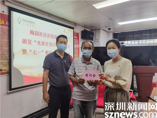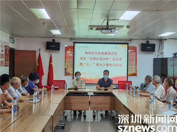 讀特客戶端·深圳新聞網(wǎng)2021年6月30日訊(記者 郭含笑 通訊員 陳秋珊 紀(jì)楚苗)為進(jìn)一步加強(qiáng)和體現(xiàn)黨組織對(duì)黨員的關(guān)心與愛護(hù),在中國(guó)共產(chǎn)黨百年華誕來臨之際,6月30日下午,深圳市羅湖區(qū)清水河街道梅園社區(qū)黨委在黨群服務(wù)中心二樓會(huì)議室舉行慶祝建黨百年頒發(fā)“光榮在黨50年”紀(jì)念章暨“七一”慰問主題黨日活動(dòng)。