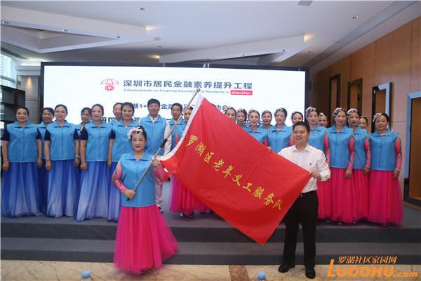 活動(dòng)現(xiàn)場,翠竹街道辦事處、東門街道辦事處、桂園街道辦事處、筍崗街道辦事處等四家“百姓學(xué)金融”科普陣地獲授牌,平安銀行股份有限公司、國任財(cái)產(chǎn)保險(xiǎn)股份有限公司、中信銀行國際(中國)有限公司、上海浦東發(fā)展銀行股份有限公司深圳分行、中國人壽財(cái)產(chǎn)保險(xiǎn)股份有限公司深圳市分公司、渣打銀行(中國)有限公司深圳分行、星展銀行(中國)有限公司深圳分行、中國銀行深圳市分行東門支行、中國農(nóng)業(yè)銀行深圳國貿(mào)支行、中國建設(shè)銀行深圳羅湖支行、交通銀行深圳羅湖支行等11家金融機(jī)構(gòu)獲授“金融社會(huì)服務(wù)天團(tuán)”,他們將一如既往擔(dān)當(dāng)“金融安全守護(hù)者”,幫助市民防范各類金融類詐騙陷阱;東縱合唱團(tuán)、深圳市羅湖區(qū)老年人協(xié)會(huì)作為老年義工服務(wù)隊(duì)獲授旗。