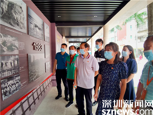 會后,吳愛華一行到紅崗西村廣場參觀了改造后的文化長廊,在老兵們的介紹下,吳愛華深刻感受到了老兵們當年為深圳建設無私奉獻的愛國之情。她表示,文化長廊真正將深圳基建工程兵這個群體的拓荒史和不怕苦、不怕累、頑強拼搏、勇于奮斗的“拓荒?!本裾故镜昧芾毂M致。