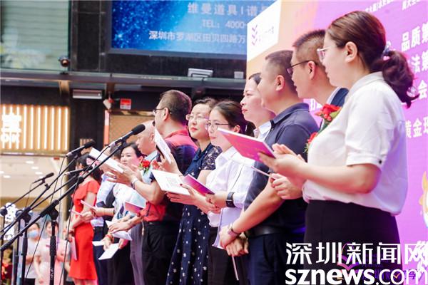 隨后,水貝萬(wàn)山珠寶文化產(chǎn)業(yè)園總經(jīng)理陳曄平、金展珠寶廣場(chǎng)招商運(yùn)營(yíng)總監(jiān)王琳琳、特力珠寶大廈運(yùn)營(yíng)總經(jīng)理崔戰(zhàn)紅、水貝金座運(yùn)營(yíng)中心總監(jiān)趙麗、水貝國(guó)際中心運(yùn)營(yíng)總監(jiān)廖燦榮等交易中心代表,以及周六福珠寶總經(jīng)理謝明育、周大生珠寶行政副總經(jīng)理周洪生、金大福珠寶副總裁丘航等珠寶品牌代表一同上臺(tái)宣誓,表達(dá)展示特色、推廣品牌、促進(jìn)消費(fèi)、助推增長(zhǎng)的決心。