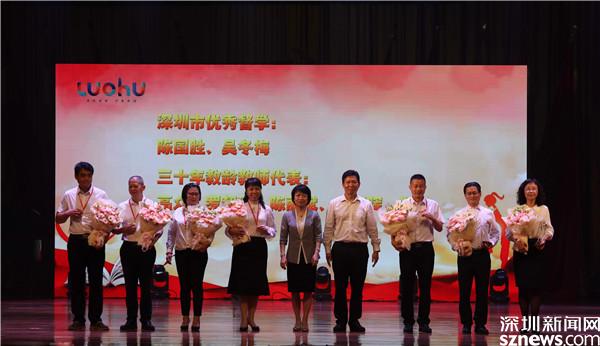 會(huì)上,羅湖區(qū)委書(shū)記羅育德,深圳市教育局黨組成員、副局長(zhǎng)王水發(fā),羅湖區(qū)委副書(shū)記、區(qū)人民政府黨組書(shū)記、代區(qū)長(zhǎng)范德繁等領(lǐng)導(dǎo)出席大會(huì)并為深圳市十佳校長(zhǎng)、2021年市級(jí)年度教師、2021年區(qū)幼兒園年度教師,三十年教齡教師、功勛園丁、教育先進(jìn)單位、先進(jìn)教育工作者、優(yōu)秀班主任和優(yōu)秀教師等代表頒獎(jiǎng)。