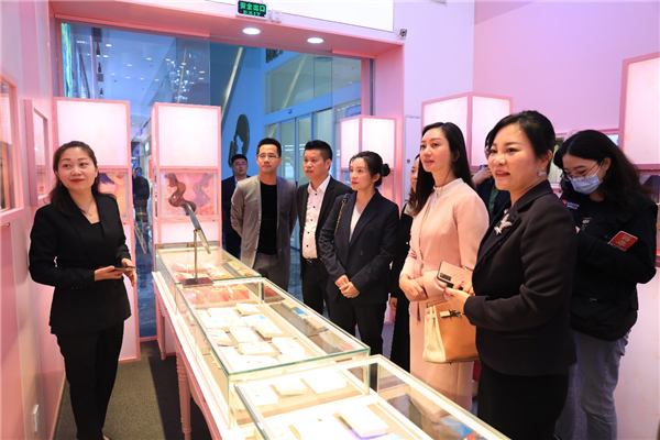 本次活動(dòng)中,人大代表們還走進(jìn)商場(chǎng)品牌門店、網(wǎng)紅店與消費(fèi)者互動(dòng)。代表們走進(jìn)周大生珠寶參股品牌大生美門店,被為大生美設(shè)計(jì)的星座極光大師系列作品所吸引目光。在翠綠門店,代表們對(duì)金箔制成的千里江山圖贊不絕口?!敖鸩谱鞒蓴?shù)米長(zhǎng)的畫,這個(gè)工藝實(shí)在是高?!贝韨?cè)谝慌愿袊@道。