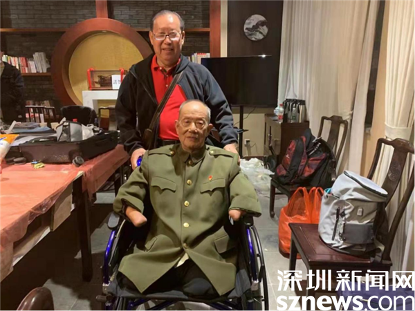 “他是71年前抗美援朝長津湖戰(zhàn)役中‘冰雕連’唯一健在的幸存者周全弟,四肢被凍傷后全部截肢,但他學(xué)會了生活自理,洗漱、穿衣、吃飯、搖著輪椅四處“散步”,甚至用手機上網(wǎng)看新聞。我們一起參加了中央電視臺在嘉興南湖紅船舉辦的《老兵你好》訪談節(jié)目?!?4歲高齡的何林說,他是一名深圳拓荒牛代表、羅湖區(qū)“紅星宣講隊”成員。