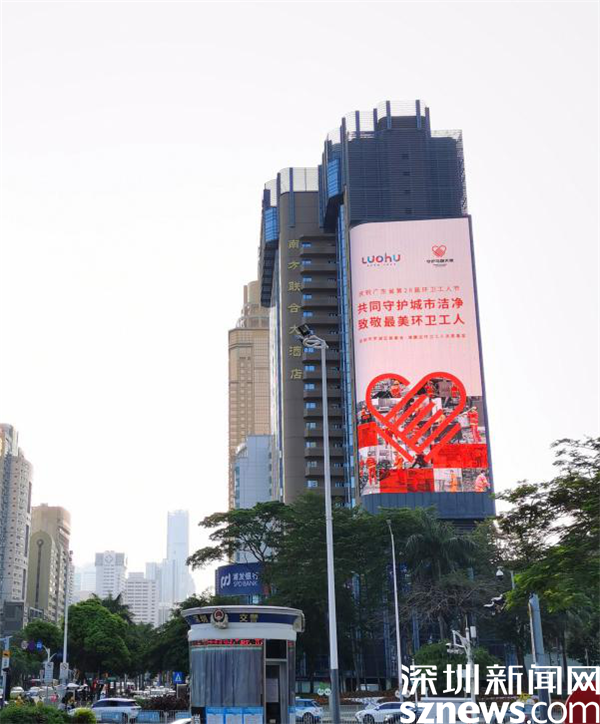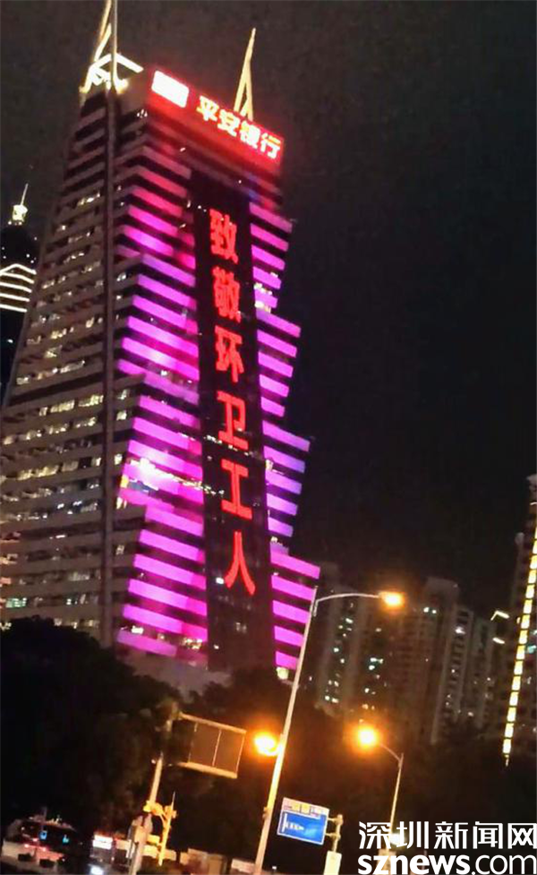 (羅湖地標性建筑為環(huán)衛(wèi)工人亮燈)