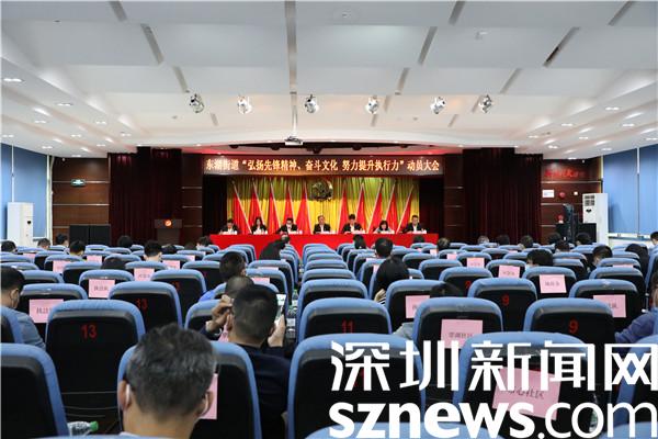 讀特客戶端·深圳新聞網(wǎng)2021年11月19日訊(記者 郭含笑 通訊員 黃貽凱)感恩奮進(jìn)跟黨走,緊鑼密鼓再出發(fā)。羅湖區(qū)第八次黨代會、區(qū)“兩會”的順利閉幕是一個結(jié)束,也是羅湖新征程、新使命、新奮斗的開始。為弘揚(yáng)羅湖光榮傳統(tǒng)、賡續(xù)羅湖血脈傳承,在街道全體黨員干部中形成憋足一口氣趕超奔跑、鉚足一股勁狠抓落實的風(fēng)氣,把先鋒精神、奮斗文化轉(zhuǎn)化為強(qiáng)大執(zhí)行力、踐行在奮斗新征程,11月19日下午,深圳市羅湖區(qū)東湖街道召開“弘揚(yáng)先鋒精神、奮斗文化 努力提升執(zhí)行力”動員大會。街道黨工委書記程時菊等處級干部,各辦、中心全體在編人員,各社區(qū)黨委書記、副書記、副站長、城管專干共100余人參加會議。