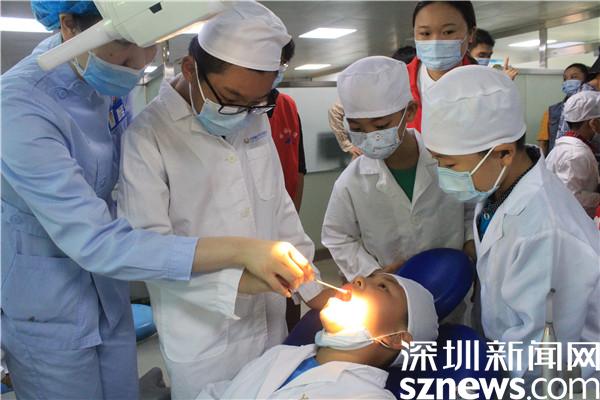 培訓(xùn)結(jié)束,小朋友們穿上白大褂,戴上醫(yī)生帽,變身小牙醫(yī),走進(jìn)診室,拿起棉簽,為“病人”檢查牙齒。10個(gè)小朋友分成5組,互為“病人”和“醫(yī)生”。小“病人”躺在診床上,張大嘴等著檢查。小“牙醫(yī)”在牙科醫(yī)生的指導(dǎo)下,仔細(xì)觀察“病人”的口腔,了解什么是健康的牙齒,什么是出現(xiàn)了問題。陳信霏小朋友檢查完“病人”后,對(duì)哥哥說,“以后可要愛護(hù)牙齒了,每天早晚按時(shí)刷牙?!备绺缫颤c(diǎn)頭同意。