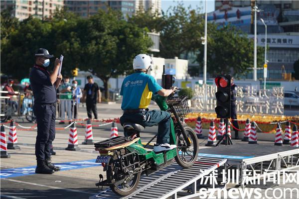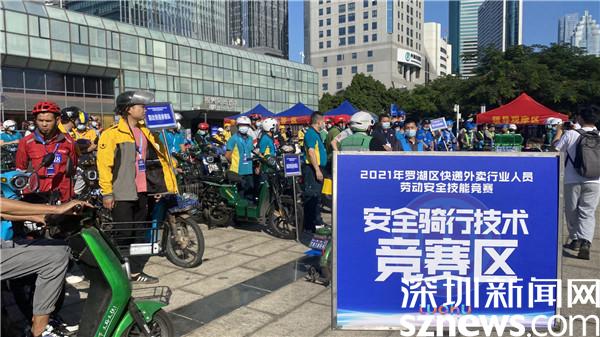 開幕式結(jié)束后,2021年羅湖區(qū)快遞外賣行業(yè)人員勞動安全技能競賽正式拉開帷幕。本次競賽分為安全知識理論和交通安全騎行技術(shù)2個項目競賽,其中,安全知識理論以職業(yè)道德、交通法規(guī)、防疫防控、行業(yè)法規(guī)、安全管理等工作領(lǐng)域應(yīng)具備的知識要求為主;交通安全騎行技術(shù)則設(shè)置了起步環(huán)境安全觀察、限寬直行穩(wěn)定性、限寬調(diào)頭、單邊橋、半坡起步等項目。在比賽現(xiàn)場,參賽選手們通過現(xiàn)場答題以及騎行實操,最終決出了團隊和個人的各個獎項。