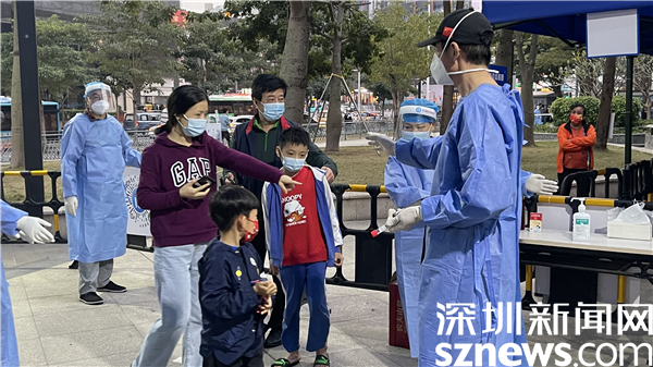 “把嘴張開,放輕松?!贬t(yī)護人員輕車熟路地進行咽拭子采樣,迅速封存標本,短短幾秒的過程不僅體現(xiàn)了“深圳速度”,更凸顯了醫(yī)護人員的耐心與專業(yè)性。不論是老年人還是小朋友,醫(yī)護人員都通過不同的溝通方式高效完成采樣工作,確保核酸檢測工作有序進行。