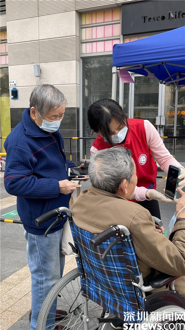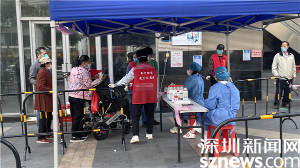 在翠竹街道金翠園核酸檢測點,記者在現(xiàn)場看到核酸檢測隊伍共分成兩條隊伍,居民正按照地面劃好的“一米線”排隊,身穿紅馬甲的社區(qū)工作人員與醫(yī)護人員正有條不紊地進行核酸采樣工作,詢問、登記、采樣......在羅湖的街頭,除了秩序井然的核酸檢測,溫暖的故事也在悄然發(fā)生著。