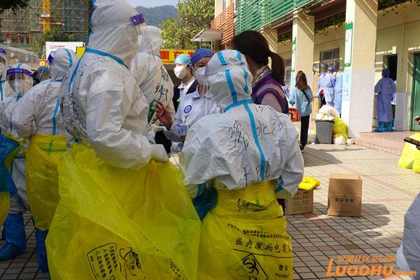 1月11日,深圳市報告4例新冠病毒陽性感染者,其中3例居住在羅湖區(qū)清水河街道草埔西社區(qū)鶴圍村64棟,鶴圍村被劃為封控區(qū)。居住在此的居民“只進不出”,但醫(yī)護人員仍需進入,開展上門核酸采樣工作。一邊要嚴(yán)控封控區(qū)進出人員,一邊要確保核酸采樣工作有序開展,于是,羅湖的“白衣天使”們紛紛成為身兼多職的“工具人”。