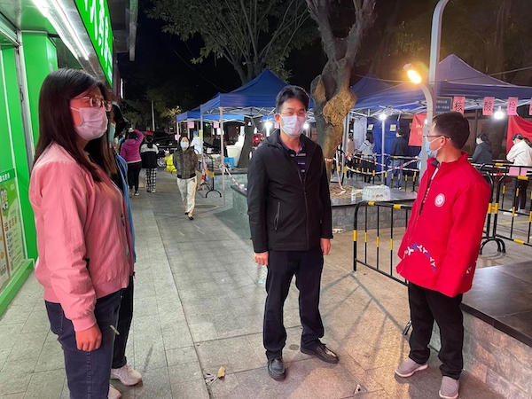 隨后,文促會(huì)一行來到了東湖街道大望社區(qū)。在社區(qū)核酸檢測現(xiàn)場,大望社區(qū)黨委書記高桂秀正在指揮現(xiàn)場工作;大望實(shí)業(yè)公司董事長何雨聰和大望社區(qū)副書記李雪康兩人都面帶倦容,明顯近期睡眠嚴(yán)重不足。據(jù)了解,高桂秀近期一直綁著護(hù)腰墊片,帶病堅(jiān)持抗疫。