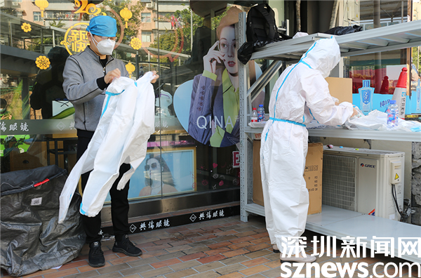 1月12日下午,由羅湖醫(yī)院放療科醫(yī)生張皓昇和護士陳曉燕組成的“導(dǎo)管維護小隊”,通過社區(qū)和患者確定好上門時間后,立即出發(fā)。張皓昇和陳曉燕攜帶了一次性換藥包、PICC透明敷料、無菌治療巾、抽血物品、消毒液等醫(yī)療物資,打車前往羅湖清水河街道管控區(qū)出入口,準備換上防護服后步行來到患者所在的樓棟,為患者進行健康評估、PICC管道維護和抽血等操作。