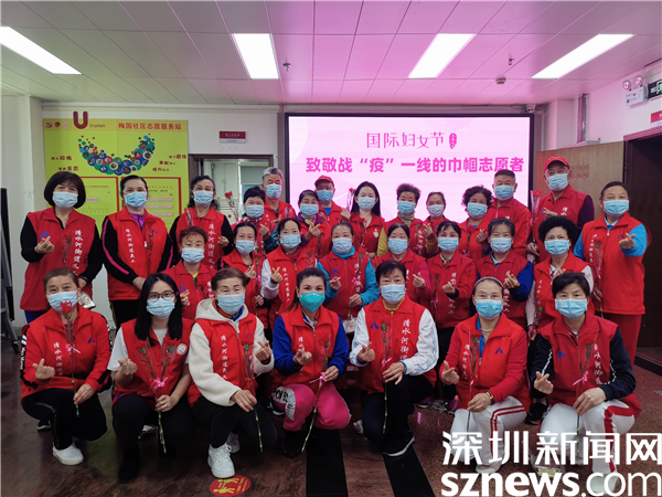 讀特客戶端·深圳新聞網(wǎng)2022年3月8日訊(記者 郭含笑 通訊員 張亮亮)自疫情防控阻擊戰(zhàn)打響以來,深圳市羅湖區(qū)清水河街道梅園社區(qū)“讓愛飛翔”志愿服務(wù)隊的巾幗志愿者們不懼辛苦,化身“藍(lán)精靈”日夜堅守在社區(qū)疫情防控一線,為社區(qū)筑起了疫情防控的“最美防線”。在“三八”國際婦女節(jié)到來之際,梅園社區(qū)黨委、社區(qū)婦聯(lián)、深圳市東西方社工服務(wù)社駐梅園黨群服務(wù)中心開展抗疫巾幗志愿者慰問活動,為一直默默守護(hù)梅園社區(qū)的“紅色娘子軍”送去節(jié)日的問候和祝福。