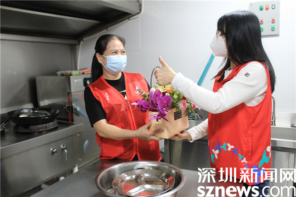 在社區(qū)廚房,老圍社區(qū)居民周文清正在忙碌,疫情開始以來(lái),社區(qū)擔(dān)負(fù)著下沉人員和醫(yī)務(wù)人員的中餐和晚餐,每餐四五十人吃飯,任務(wù)繁重,廚師一人根本忙不過來(lái)。家住老圍花園的社區(qū)居民賴秀文、周文清得知情況后,立刻趕來(lái)幫廚,洗菜、切肉、炒菜、分裝飯盒、搞衛(wèi)生,樣樣都搶著干。羅湖區(qū)最美家庭賴秀文,一連兩個(gè)星期在社區(qū)幫廚,發(fā)揮她高超的廚藝,將每一道菜都做得色香味俱全。有了這些熱心居民的協(xié)助,一線人員得以及時(shí)吃上熱乎乎的飯菜,保障了防疫工作有序進(jìn)行。她們用自己的方式參與疫情防控,為社區(qū)安寧貢獻(xiàn)一己之力。