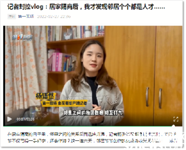 住在華瑞大廈A座封控區(qū)的第一現(xiàn)場記者楊語然,每天拍攝視頻記錄封控生活。在她的鏡頭下,封控區(qū)防疫工作有條不紊,民生服務(wù)暖心到位,鄰里之間抱團(tuán)取暖、相互打氣。她表示,因?yàn)檫@段“特殊的”居家隔離時(shí)光,鄰里之間的關(guān)系反而迅速升溫,每天在微信群里互動(dòng),才知道住在一起的鄰居們那么多才多藝。