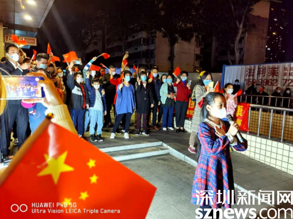 夜色中,居民們紛紛下樓,享受著解封后的喜悅心情。解封當(dāng)晚,桂園街道還為居民群眾準(zhǔn)備了祝??ê蛺坌男《Y包,感謝他們對街道疫情防控工作的支持和理解。