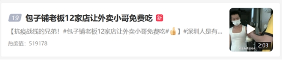 讀特客戶端 深圳新聞網(wǎng)2022年3月24日訊(記者 胡津瑋)3月23日,深圳“包子鋪老板12家店讓外賣小哥免費吃”火上熱搜,網(wǎng)友紛紛點贊稱要多買包子支持老板。包子鋪老板陶先生回應(yīng)稱,會把愛心舉措延續(xù)下去,已在籌劃方便、快捷的“外賣小哥套餐”。