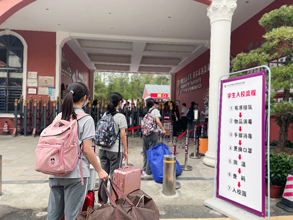 讀特客戶端·深圳新聞網(wǎng)2022年4月11日訊(記者 吳艷 通訊員 魏次開)今日上午7點(diǎn)左右,羅湖區(qū)諾思外語實(shí)驗(yàn)學(xué)校大門外,帶著濃濃返校期盼的學(xué)生和家長們早已提前等候在學(xué)校門口,左手書包右手行李,自覺列隊(duì)等待核驗(yàn),開啟了初三學(xué)生春季學(xué)期返校的序幕。