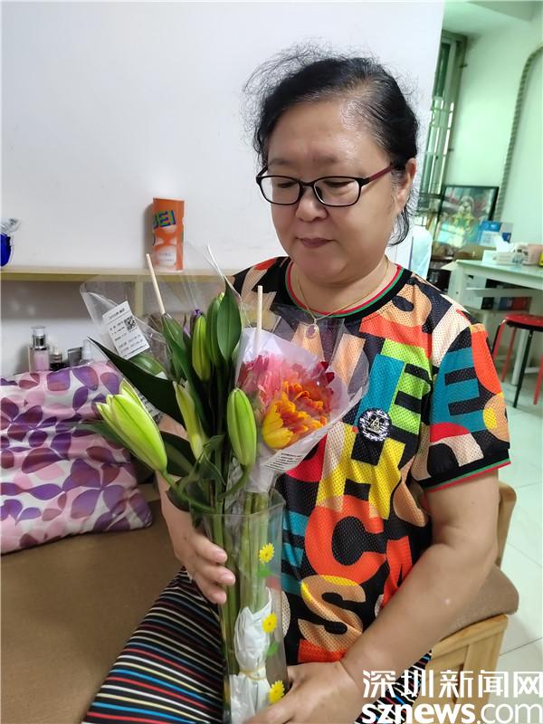在活動過程中,11位組員都收到了一束鮮花,是社工利用空余時間,捧著花送到每位組員家中的。社工用鮮花敲開組員的家門,這就仿佛是一次家訪,收到花的組員開心地與社工合影?;ㄩ_的時候,不少組員都拍下來發(fā)在群里,讓快樂與美好的氣氛在群里彌漫。組員袁春艷在微信群里說:“感謝人美心善的社工們,在工作異常忙碌的同時,不僅為我們精心準備干貨滿滿、精彩絕倫的減壓課,還為我們送來鮮花的芬芳!讓我日常雜亂的家變得美麗精致、花香彌散、情趣高雅!真的有太多向您學習的地方!愛您!”