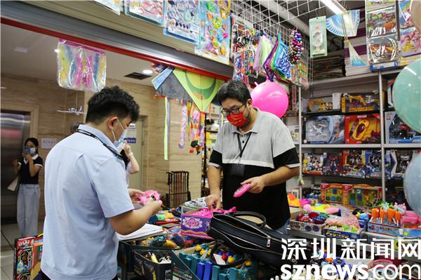 當(dāng)天,執(zhí)法人員對(duì)位于羅湖區(qū)筍崗文具玩具專(zhuān)營(yíng)市場(chǎng)的33家經(jīng)營(yíng)商戶(hù)進(jìn)行檢查,檢查發(fā)現(xiàn)其中3家商店經(jīng)營(yíng)的“兒童美妝包”等兒童化妝品外包裝上未標(biāo)識(shí)化妝品備案號(hào),當(dāng)事人現(xiàn)場(chǎng)無(wú)法向執(zhí)法人員提供涉事兒童化妝品的備案材料,涉嫌經(jīng)營(yíng)未經(jīng)備案的化妝品,此外,專(zhuān)項(xiàng)行動(dòng)中執(zhí)法人員還查處了3家涉嫌經(jīng)營(yíng)“三無(wú)”產(chǎn)品的玩具類(lèi)經(jīng)營(yíng)商戶(hù)。經(jīng)初步清點(diǎn),現(xiàn)場(chǎng)共查獲涉嫌違法的兒童化妝品、玩具20余件,執(zhí)法人員現(xiàn)場(chǎng)依法將上述物品予以扣押,目前案件正在進(jìn)一步調(diào)查中。