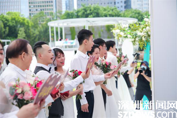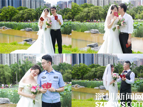 讀特客戶端·深圳新聞網(wǎng)2022年6月17日訊(記者 李慧 通訊員 楊嘉雯)6月中旬的洪湖公園,荷花盛開(kāi),17日早上,羅湖區(qū)民政局把婚姻登記頒證廳搬到這優(yōu)美環(huán)境、文明的氛圍中,舉辦“新時(shí)代心羅湖,荷創(chuàng)文明新婚俗”婚禮登記集體頒證儀式?,F(xiàn)場(chǎng)以并蒂蓮為背景,以文明、時(shí)尚、簡(jiǎn)約作為主題元素,提倡“重登記、強(qiáng)責(zé)任、崇節(jié)儉”的文明新婚俗。