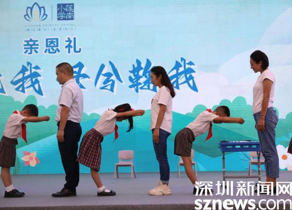 活動(dòng)由詩(shī)歌吟唱《鹿鳴》拉開了序幕?!案纲馍遥纲饩衔摇?,熒幕上播放著子女和父母溫馨互動(dòng)的視頻,隨后上演的親恩禮,表達(dá)了子女對(duì)父母的深深愛意。當(dāng)主持人問到一位家長(zhǎng)時(shí),她眼含熱淚地說:“我此刻很激動(dòng)也很幸福,孩子給我捶背還給我寫卡片,感謝這次儀式感滿滿的活動(dòng),拉進(jìn)了我們家長(zhǎng)和孩子的距離,真的非常暖心!”