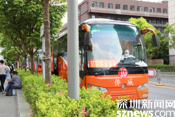 在小區(qū)外,一排防疫轉(zhuǎn)運專車??柯愤叄ぷ魅藛T有序引導小區(qū)的居民登記上車。