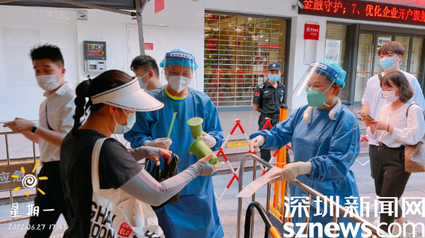 除了“人力”支援,“物力”支援也沒落下??紤]到大部分核酸檢測點(diǎn)的現(xiàn)場工作人員要在高溫下工作,南湖街道周邊商戶及居民自發(fā)送來米湯、甘蔗汁等防暑物資,為防疫一線工作人員“送清涼”。